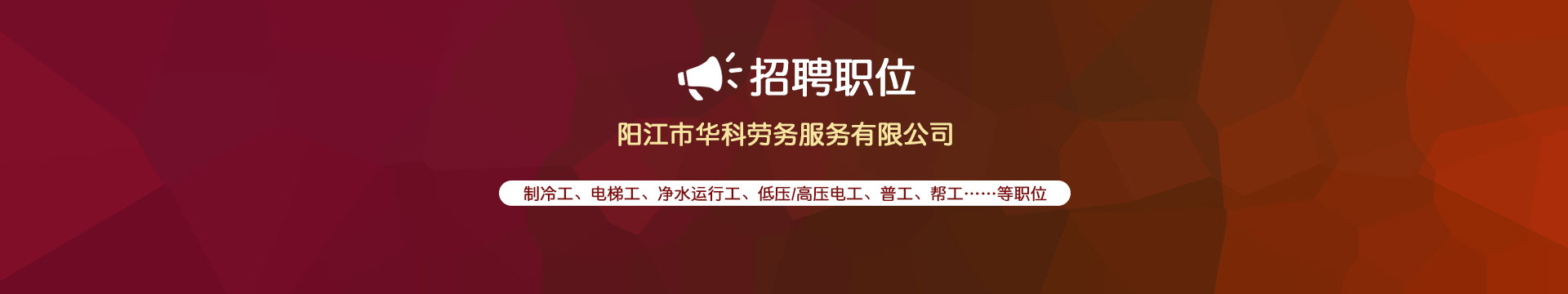 陽(yáng)江市華科勞務(wù)服務(wù)有限公司是專(zhuān)業(yè)從事勞務(wù)外包、人事代理、勞務(wù)租賃、人力派遣及管理的綜合性服務(wù)機(jī)構(gòu),是首批獲得廣東省人力資源廳、陽(yáng)江市勞動(dòng)和社會(huì)保障局頒發(fā)人力資源許可證的合法單位。“誠(chéng)信務(wù)實(shí)、專(zhuān)業(yè)熱情、滿(mǎn)意第一、服務(wù)社群”的經(jīng)營(yíng)理念,在勞務(wù)派遣業(yè)務(wù)的基礎(chǔ)上,更致力于合同制工人(臨時(shí)工、實(shí)習(xí)生、假期工)方向發(fā)展,為用工企業(yè)及時(shí)輸送合格的各類(lèi)人才,合理調(diào)配人力資源的有序流動(dòng),幫助求職者尋求更加滿(mǎn)意的就業(yè)渠道和崗位,切實(shí)維護(hù)求職者的合法權(quán)益。